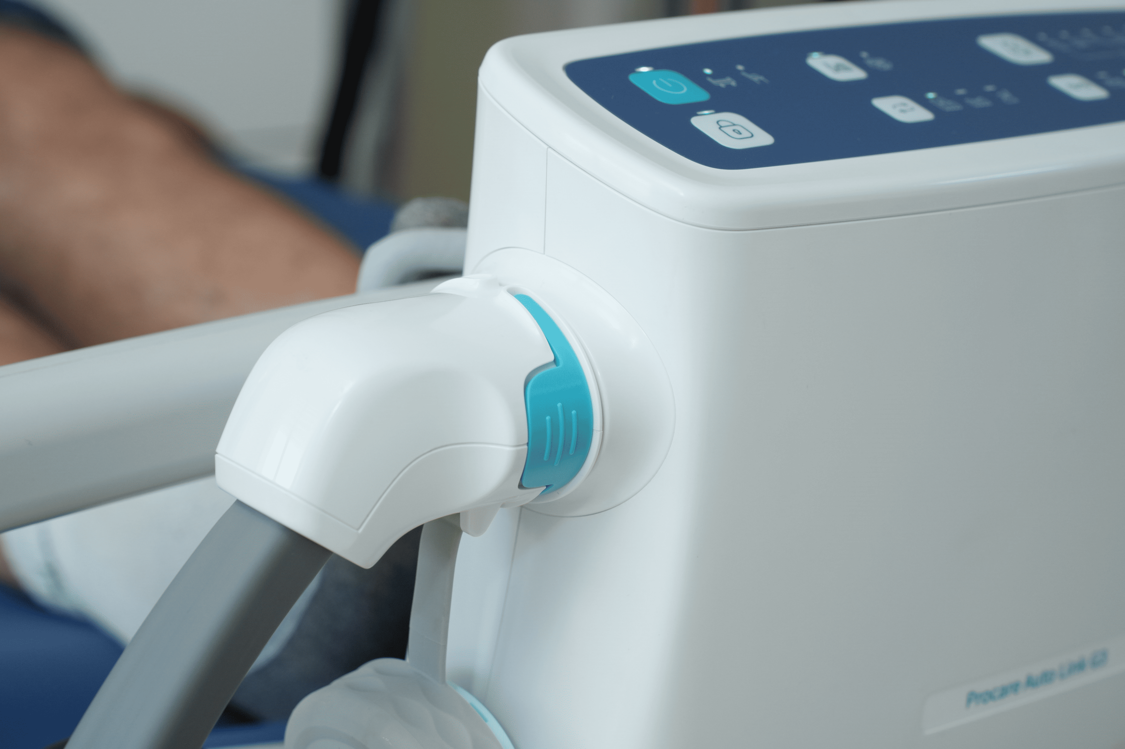 More durable fuel nozzle-style quick connector with an easy-to-clean rectangular air hose design, supporting durability and infection control in clinical settings. FlexVent (Non-PVC air tunnels) reduces packaging volume for storage efficiency. Color-coded A/B snap-on tubes allow quick replacement.
